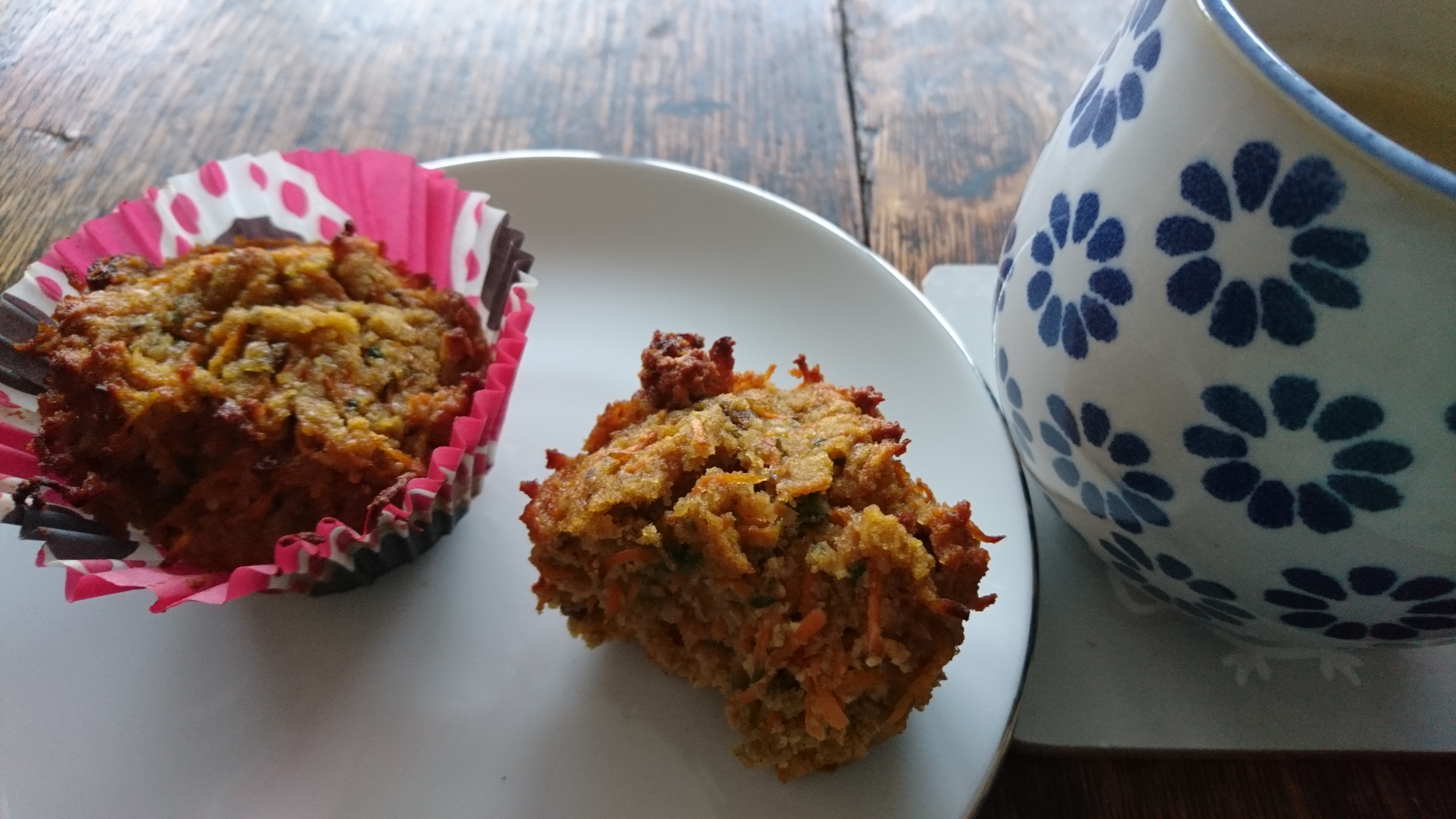 I discovered this by looking at a Hemsley and Hemsley banana bread recipe in a hope to use the huge number of very black bananas I’d collected in my fridge. When I came to opening them, they had really gone too far, so I substituted carrot and then added a few extras. They are moist and delicious!