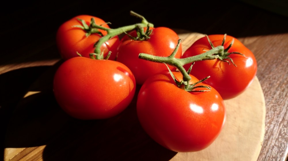 Slice both onto a plate and drizzle with the best quality virgin cold pressed olive oil you can afford. Apparently the best stuff makes the most bubbles when shaken.