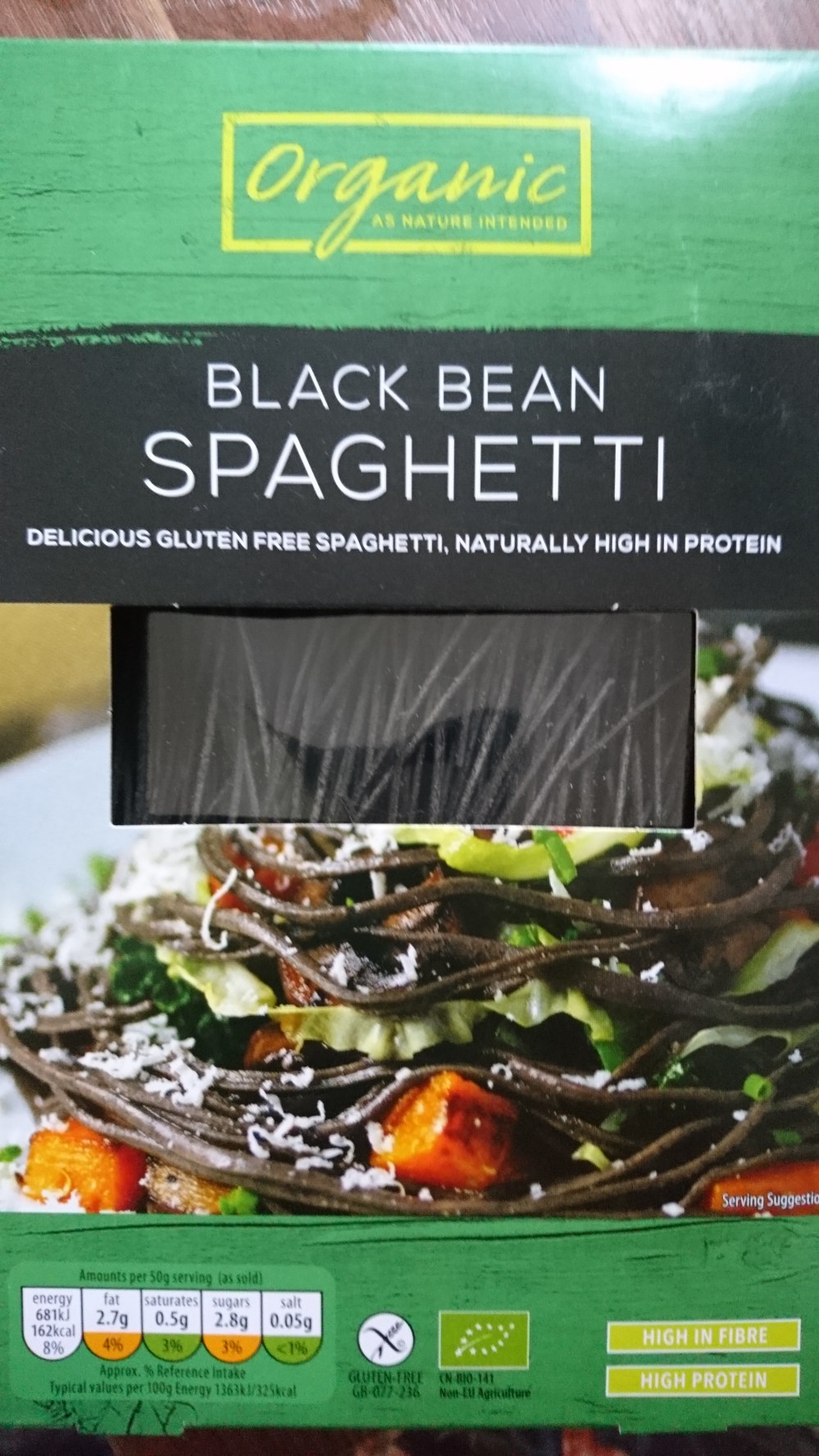 Then boil some water in a new pan and add a good bundle of black bean spaghetti to the water. Boil for 3mins, strain then drizzle with olive oil and salt. Mix.