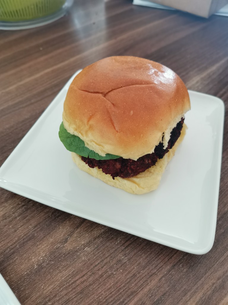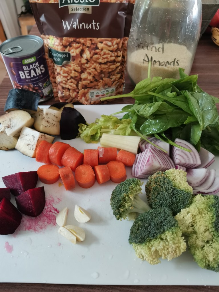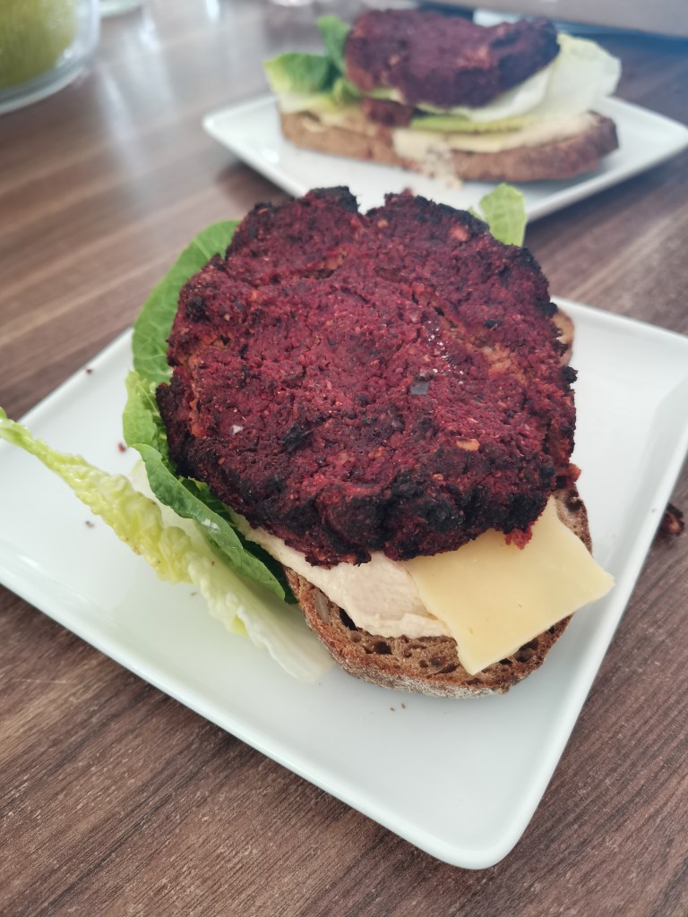 This came from The Vegan Athlete’s Cookbook and is absolutely delicious. I’ve tweaked it to remove gluten. Easy to make as it all goes into the blender and full of veg. It’s also super packed with fibre quadrupling it from a standard beef pattie and reducing the saturated fat to about 2g from 8g in a usual thin burger.