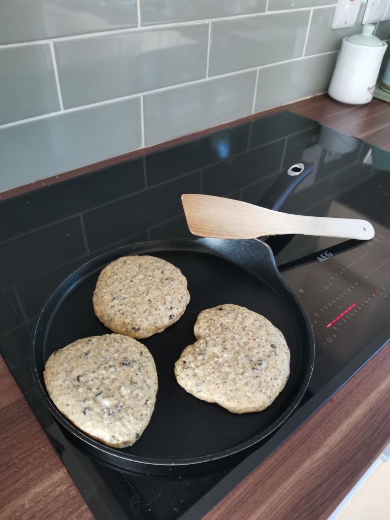 If you want to make the regular fluffy American pancake then it’s 1 cup self raising flour, 1 cup milk, 1 egg. Mix then follow the above steps. But there’s no goodness in this compared to the one above, but they do taste fabulous and are much better than a UPF shop bought one. I’ll post the recipe for this separately when I next make them!