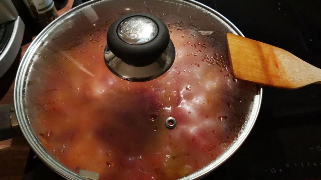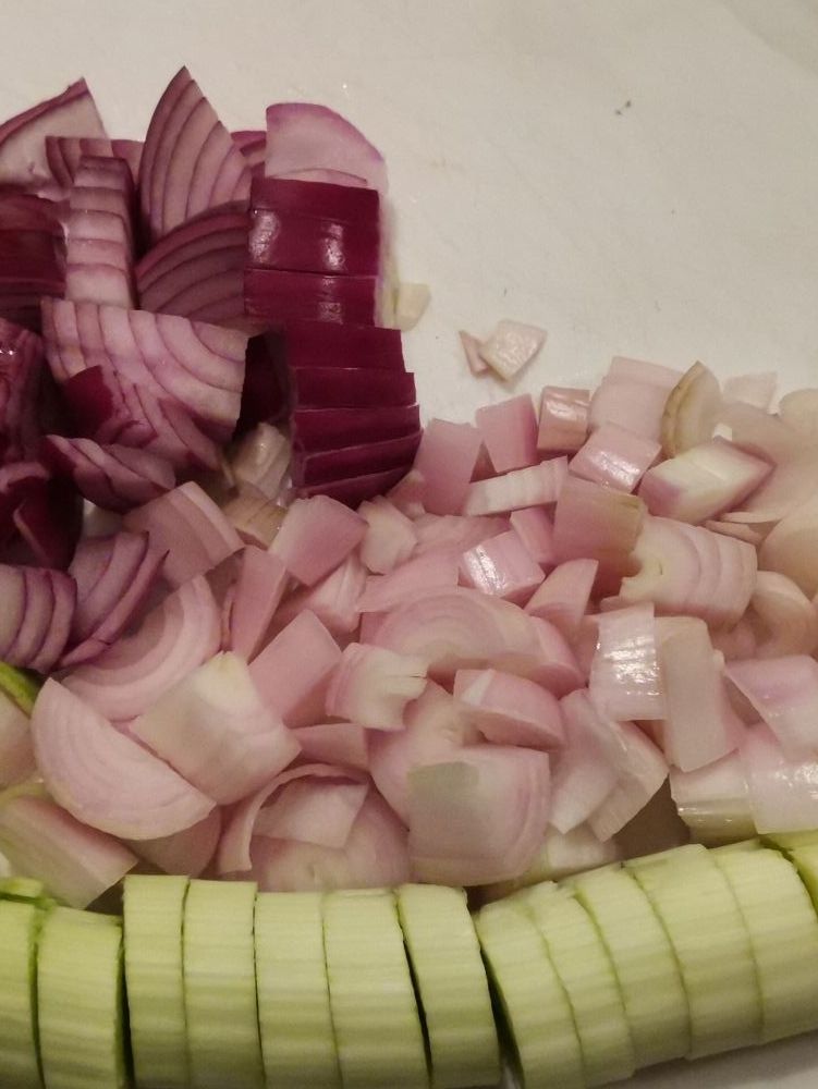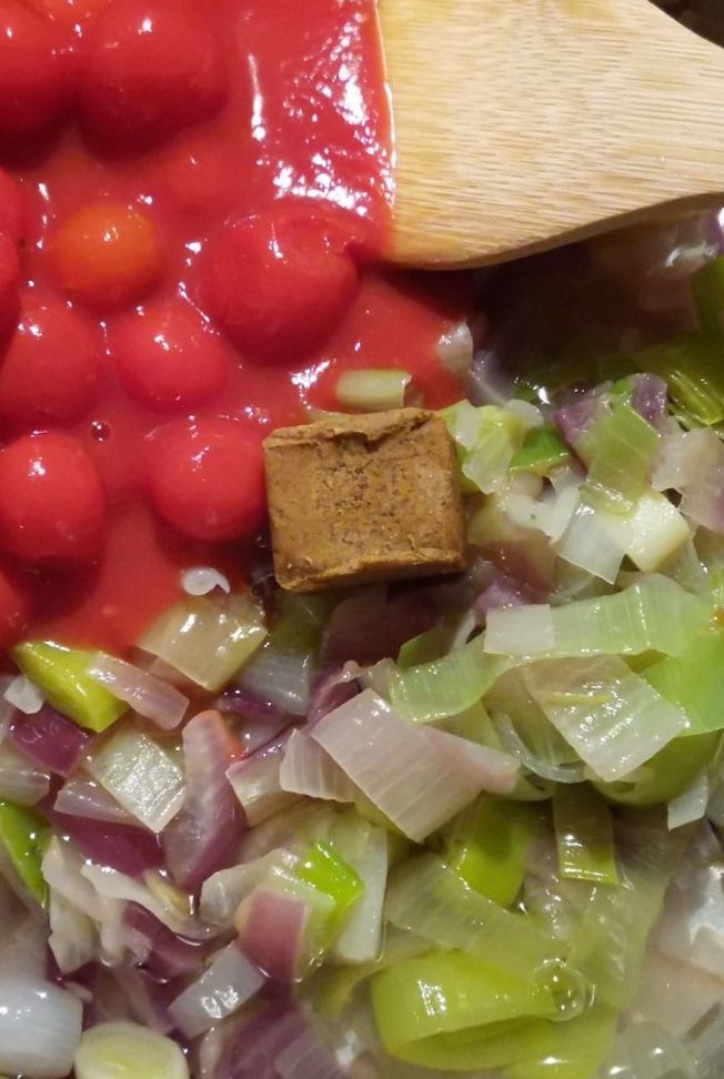 I’ve added in extra veg, to boost my veg count, but it works very well with a leek, an onion and some dried parsley if you don’t have much fresh veg in.