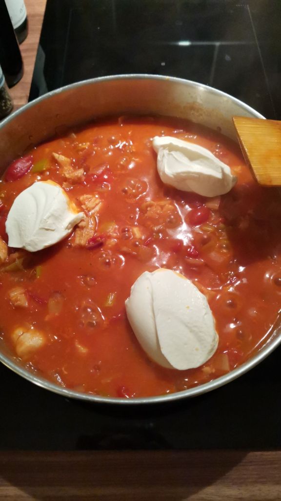 When the fish is cooked add creme fraiche. Stir in carefully so as to not break up the fish too much.