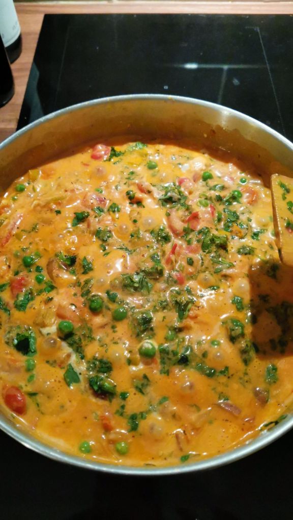 Rich, creamy, decadent and full of goodness. I’ve upped the veg so this provides you with 6 veg in one meal and all cooked in one pan. Super quick and easy, this would even work for a special meal. I’ve kept it carb light, but it would work nicely with crusty bread.