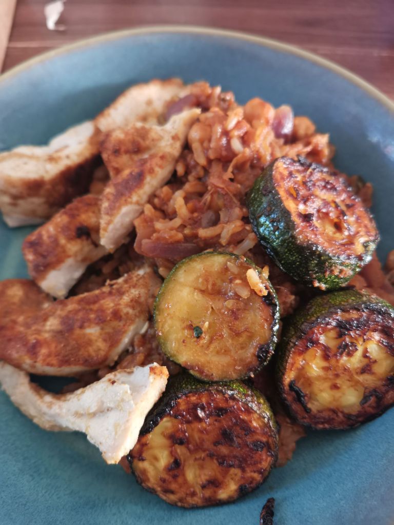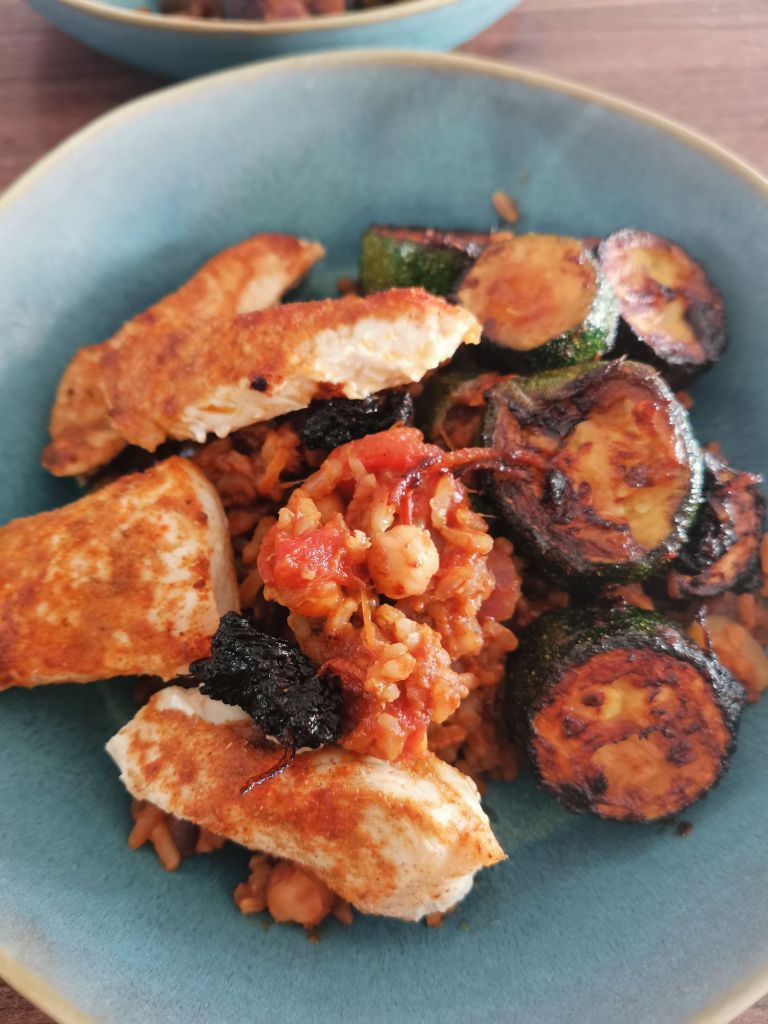 You can also serve with chicken, cooked in 1tsp cumin, 1tsp coriander, 1tsp paprika in the air fryer for 12min at 180 °C.