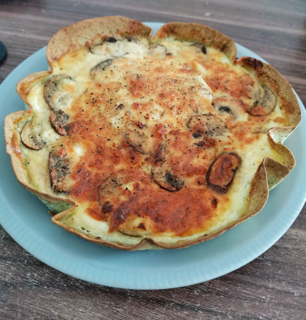Lightly oil a cake tin and press the wrap into it. Make sure the wrap comes up the sides of the tin.