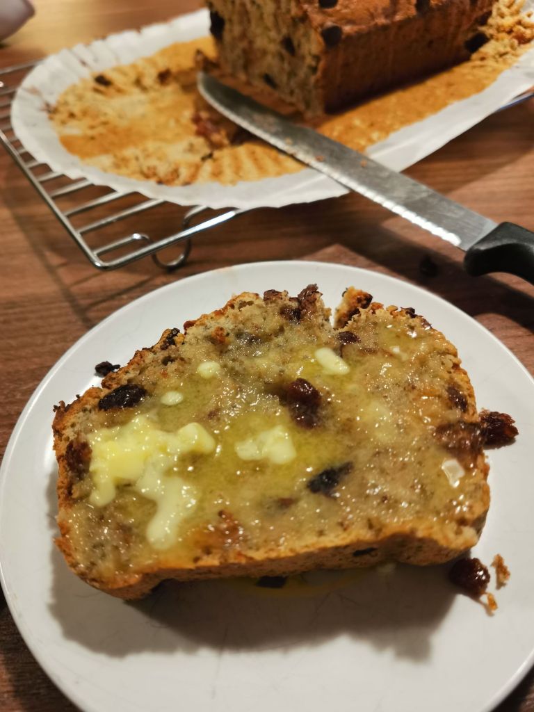 Pour it into a lined loaf tin